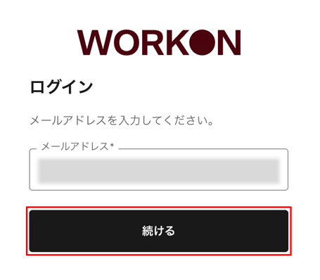1. 「ログイン」画面よりメールアドレスを入力し[続ける]を押します。