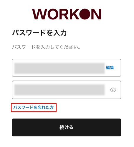 2. 「パスワード入力」画面の「パスワードを忘れた方」を開き、「パスワードを設定」の画面に移動します。