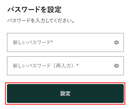 5. パスワードを設定」画面で新しいパスワードを2回入力し[設定]を押します。