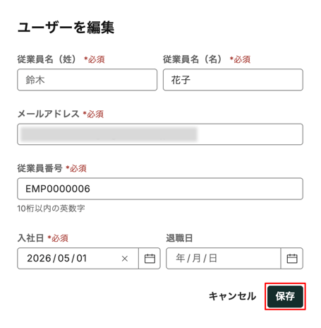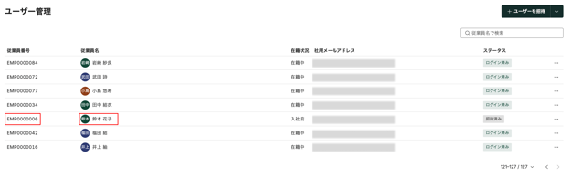 - 「ユーザー管理」画面で、情報を変更した従業員の情報が更新されたことを確認できます。