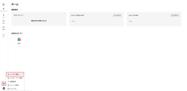 画面左端のサイドメニューの[歯車アイコン]を押し[ユーザー管理] を選択すると「ユーザー管理」画面に移動します。